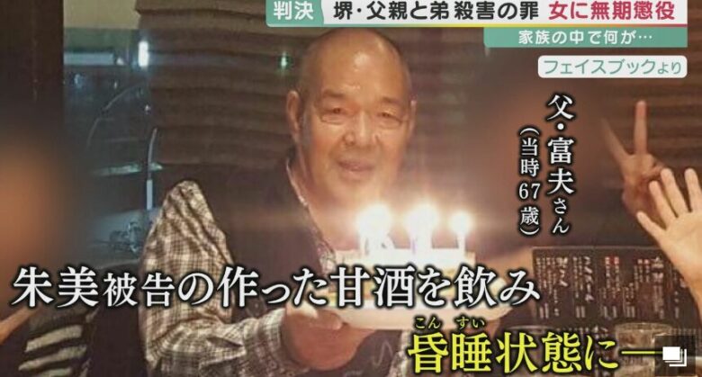 2018年、大阪府堺市において、足立朱美被告(当時50歳)は、同居していた父親と弟を相次いで殺害したとされます。