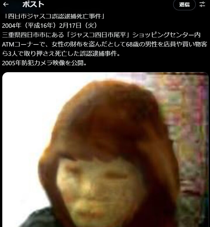 最も多くの人が混同しているのが、1982年(昭和57年)に三重県四日市市で発生した「四日市ジャスコ誤認逮捕死亡事件」です。