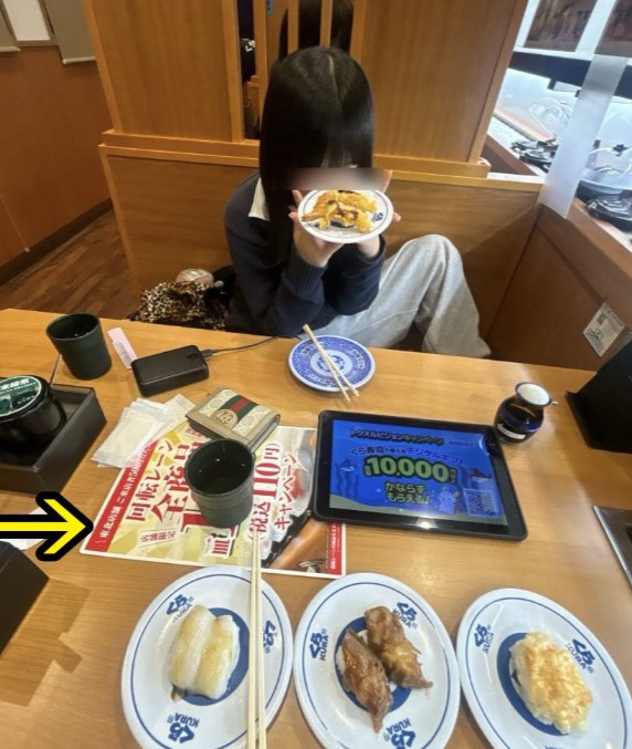 山形市南館のくら寿司にて城北高校2年生の『山本かんな(撮影者)』と『四辻りあ(犯人)』による飲食店への衛生テロリズム。