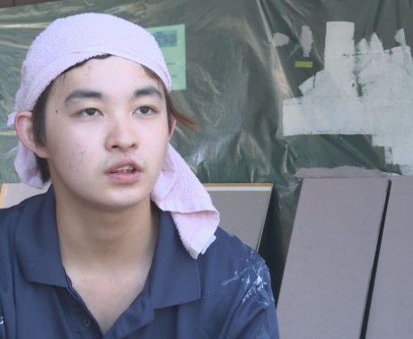 現在の彼は、職人見習いとして現場に出て、ペンキを塗ったり足場を組む手伝いをしたりしています。