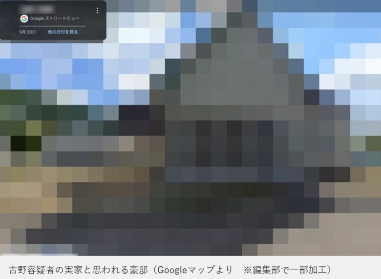 これを聞くと、誰もが「金持ちの放蕩息子なの?」と思ってしまいますよね。実際、報道ではモザイク付きながら「吉野被告の実家と思われる豪邸」のストリートビュー画像まで流出しました。